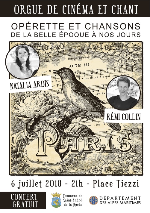 St-André-de-la-Roche, Alpes-Maritimes (06), le 6 juillet 2018 – « Opérette et chansons françaises de la Belle Époque à nos jours » – Tea for Two Organ Duo